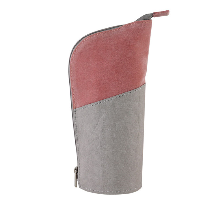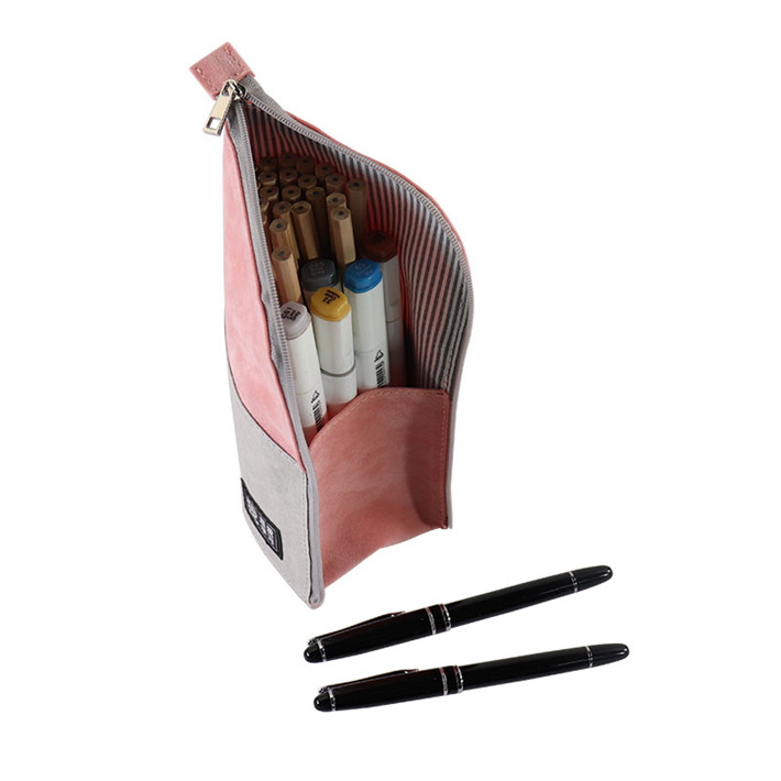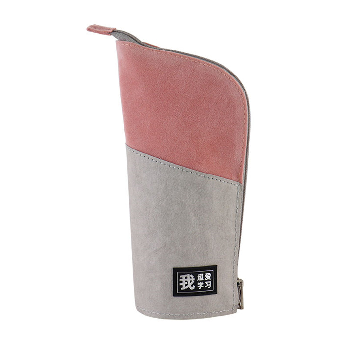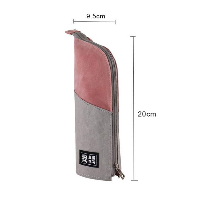 2019得力文具筆袋筆筒二用多功能牛皮紙拼接桃皮絨拼接學生袋定制
